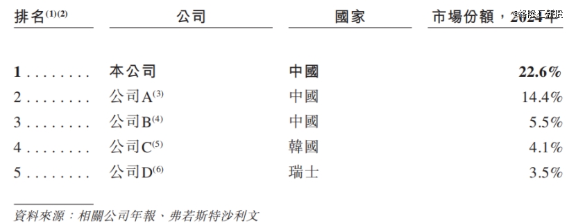 根据弗若斯特沙利文的资料,以2024年营业收入计,浙江荣泰在新能源领域云母产品市场中位列全球第 一,市场份额为22.6%;在中国市场排名第 一,市场份额为14.1%。