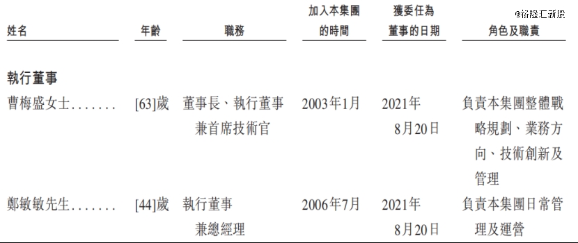 曹梅盛今年63岁,为公司的联合创始人、董事长、执行董事兼首席技术官。她于1982年7月毕业于中国杭州化学工业学校(现称浙江工商大学),并于2018年6月获得位于中国的电子科技大学机电一体化专业(在线岁的郑敏敏任公司执行董事兼总经理,他于2006年7月入职,历任集团技术工程师、销售副总、总经理等高级职务。他于2006年3月获得中国浙江大学测量技术与仪器硕士学位。